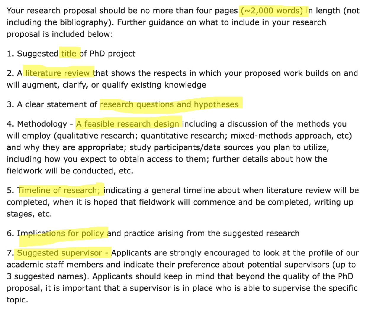 Adapted from Denscombe (2012) Research Proposals: A Practical Guide